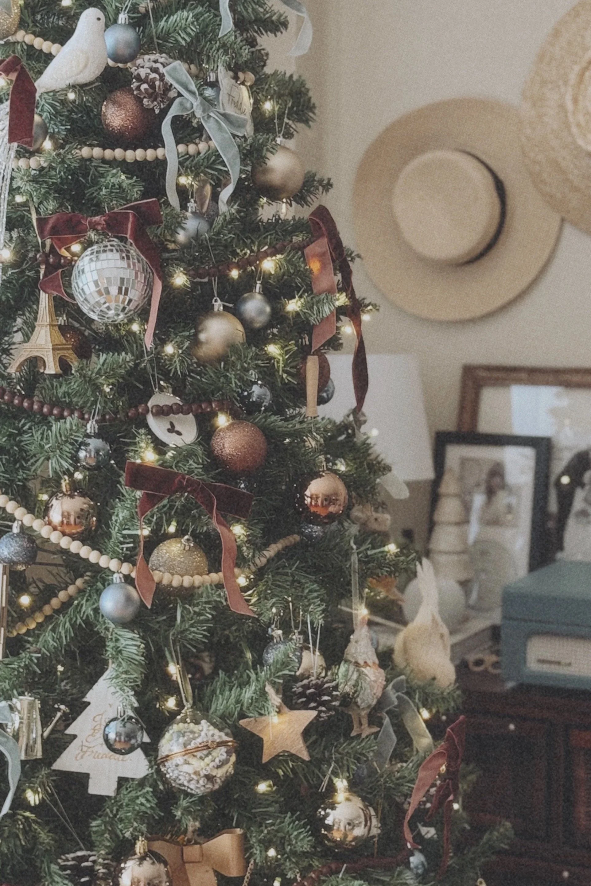 Another texture that I love to include is velvet ribbons. If you ask me, there is absolutely nothing more cottage-feeling to me than delicate ribbons tied throughout the tree! This has become a popular trend across so many types of holiday decor over the years, but it really feels like it stems from an old-school, cottage Christmas feeling.