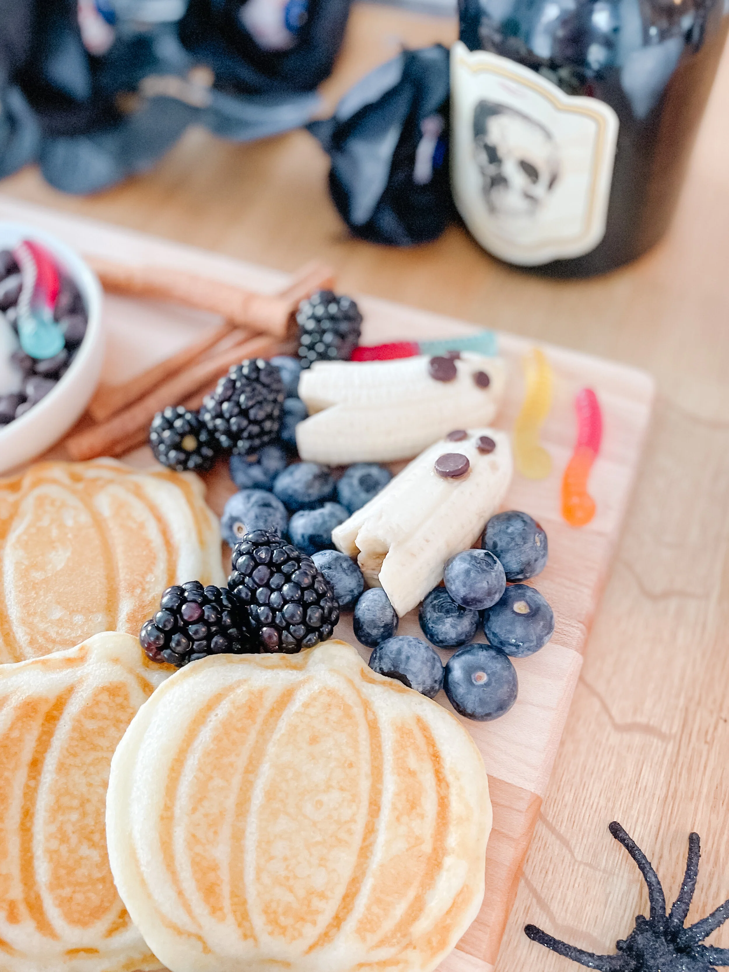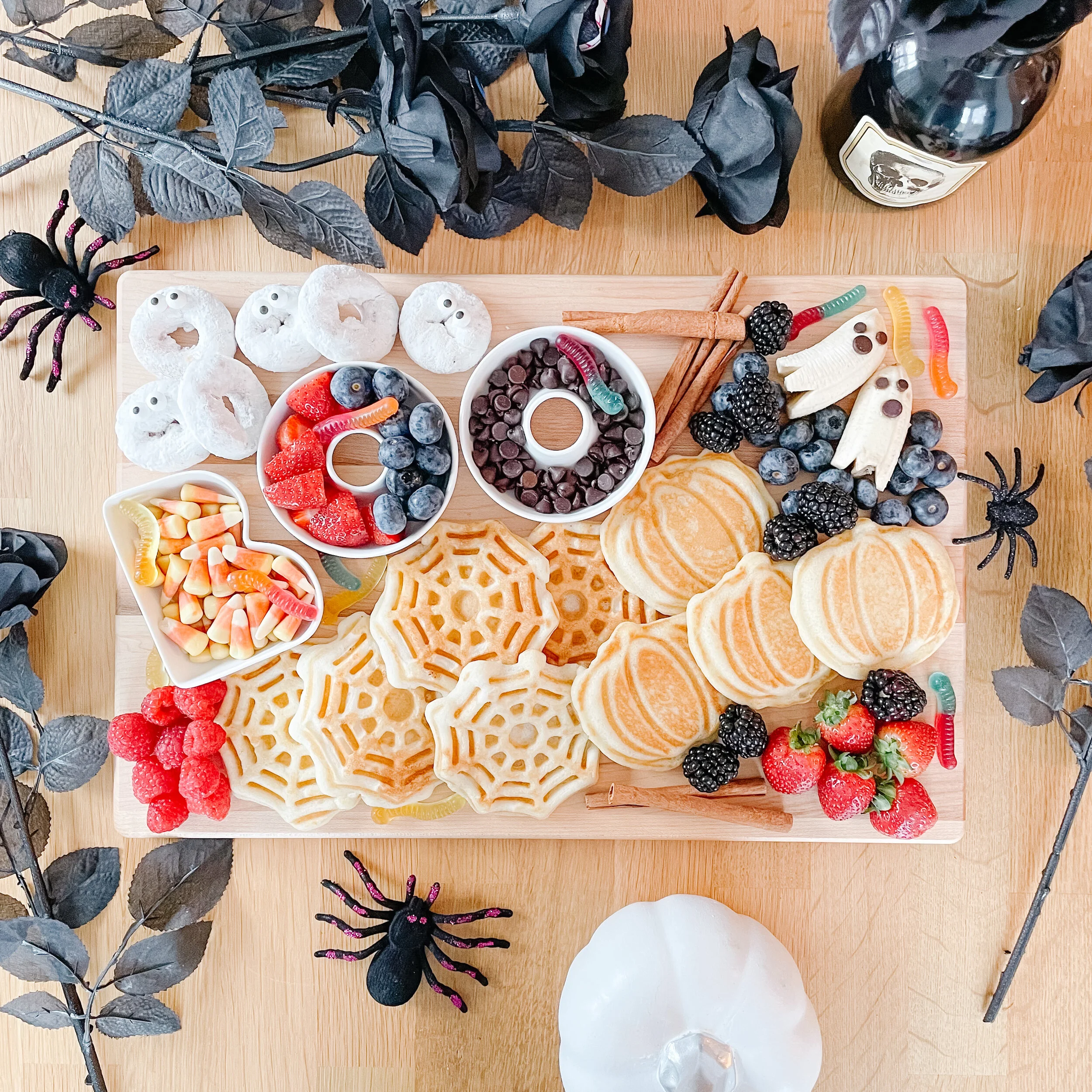 With Thanksgiving only two days away, it’s officially time to start thinking about the transition from cozy, thankful fall vibes to all things spooky season! I know I already shared some of my favourite spooky season clothes, but now it’s time to talk about spooky season breakfast! Yep, before we even talk about Halloween decor, I’m going to start with the most important meal of the day that gets us fuelled to decorate for Halloween! Let me show you how to make a Halloween breakfast charcuterie board to enjoy this October.