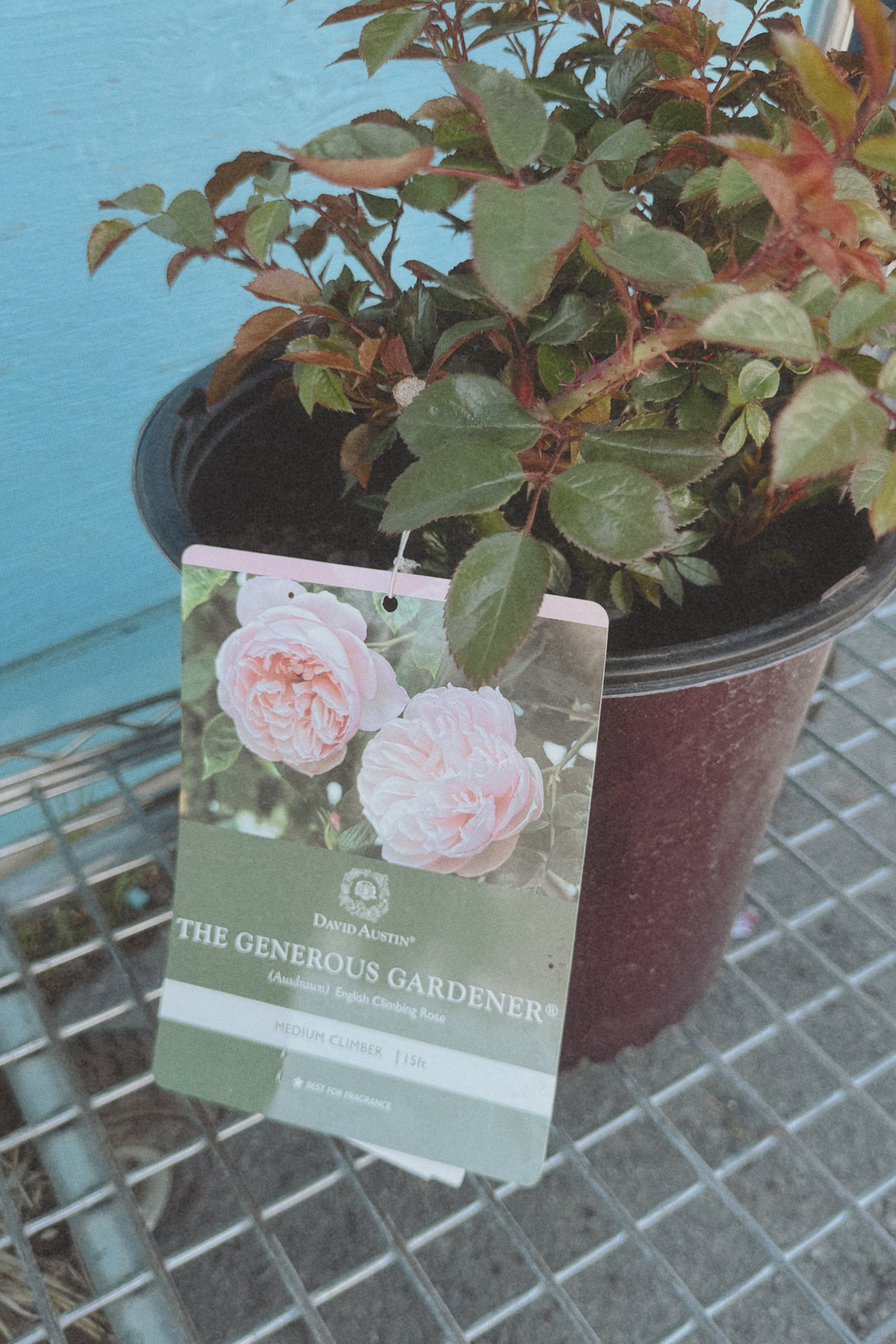 I started off with getting a David Austin bush rose, specifically, a Queen of Sweden. It’s planted in a shadier spot, while the climbing rose, The Generous Gardener, is in a slightly sunnier location, but both are planted directly in ground. Both are shades of pink (the Queen of Sweden leans more cool toned, and the Generous Gardener slightly warmer), produce medium sized blooms, are repeating flowering roses (they bloom continuously throughout the season), and are considered medium sized. The Queen of Sweden being a shrub rose caps out at about 4ft tall, while the Generous Gardener will grow to about 15ft, and will be trained to grow up a trellis. Both of these were perfect sizes for the space we have! The main difference (for me) between these two plants is that the shrub is great for cut flowers, while the climber will, of course, be just that – a climber.