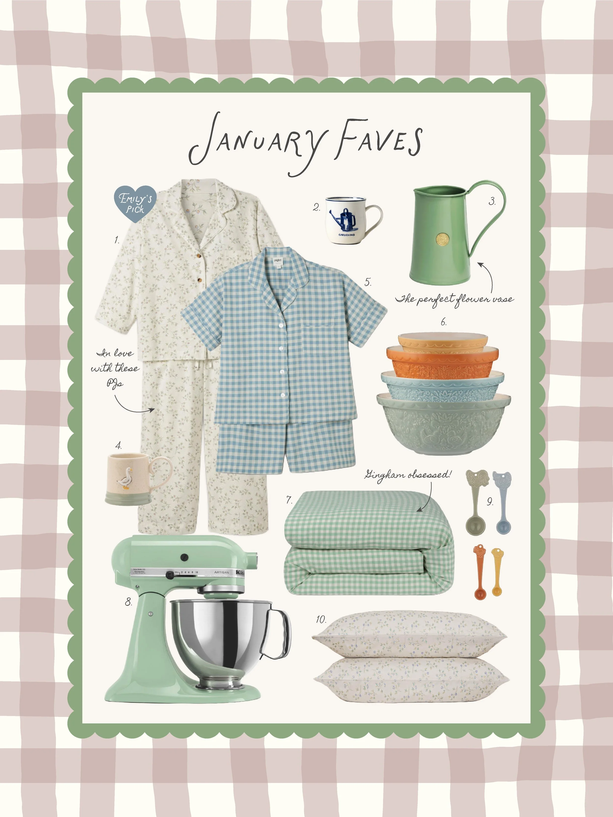01. Cotton PJs (🇬🇧) | 02. Gardening Mug (🇺🇸) | 03. Daylesford x Haws Jug (🇬🇧) | 04. Goose Mug (🇬🇧) | 05. Cotton-Linen Blend PJs (🇬🇧) | 06. Mixing Bowls (🇬🇧) | 07. Gingham Duvet Cover (🇬🇧) | 08. Stand Mixer (🇺🇸) | 09. Measuring Spoons (🇬🇧) | 10. Pillow Cases (🇬🇧)