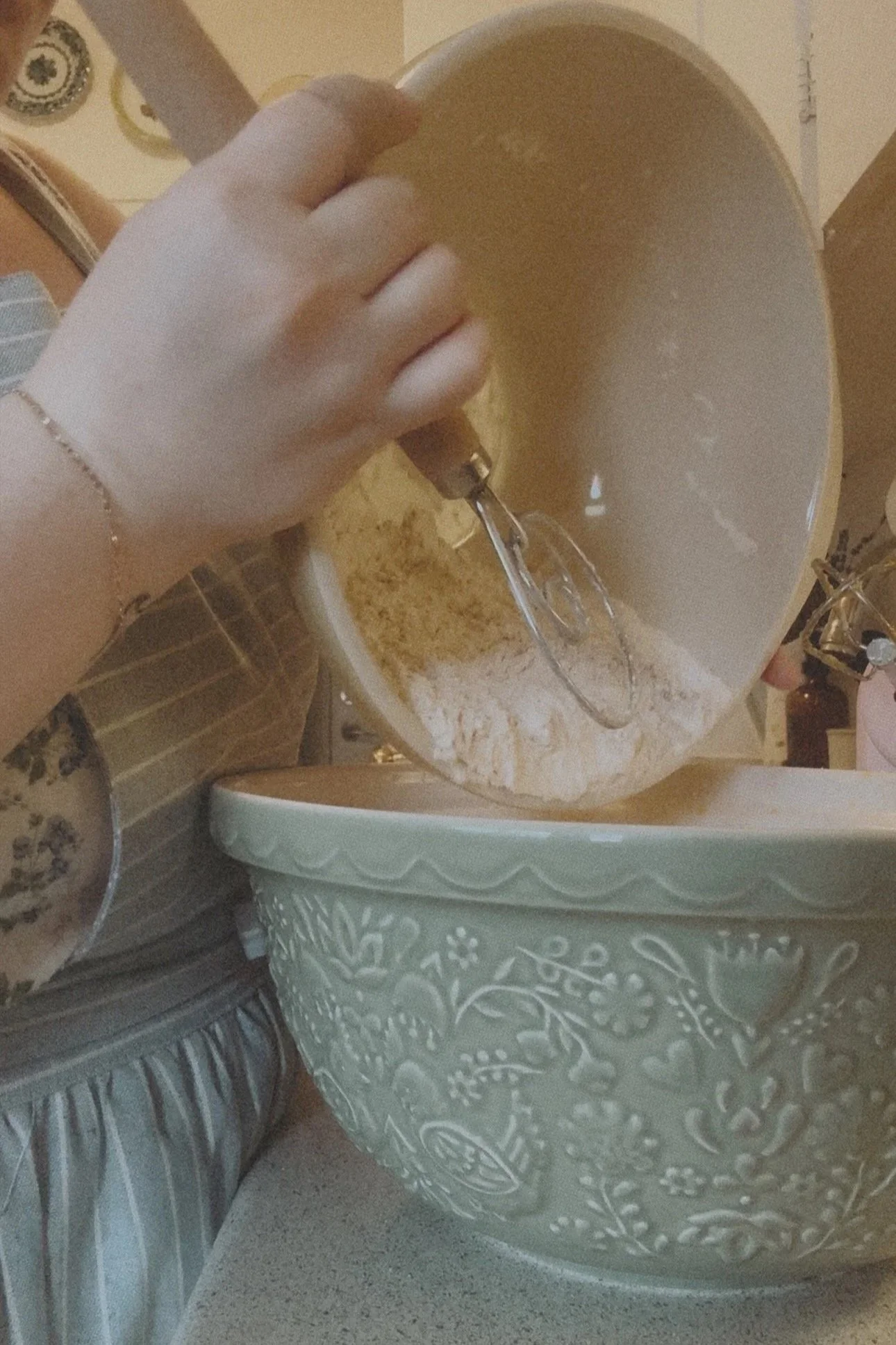 - In another large bowl, add the softened butter and granulated white sugar, and cream them together for approximately 2 minutes using your electric hand mixer on high speed, or use a stand mixer.